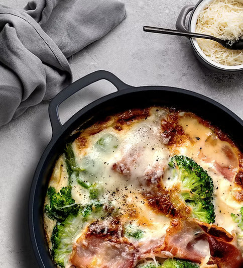 AluChef is a lightweight, high-performance cast aluminium casserole pot that weighs only a third to a quarter of traditional cast iron cookware. Designed for healthy cooking and catering services, it features a durable, PFOA-free, non-stick coating that ensures safety and makes cleaning easier. The exterior has a high-heat silicone enamel finish that is stain-resistant and suitable for all types of cooking.